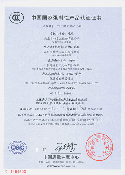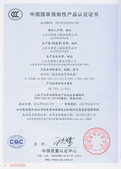 ใบรับรอง 3C ตู้แรงดันต่ำ